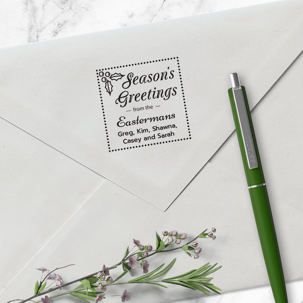 Custom Holiday Address Stamp Elevate your correspondence with this Designer Stamp®. Stamps are great for envelopes, notes, hang tags, promotional materials, and much more. This product selection includes the stamp...